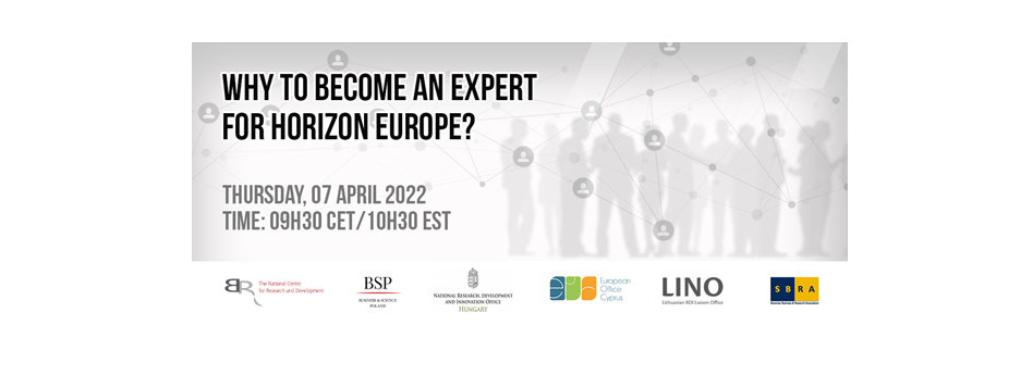 The European Office of Cyprus – Brussels Office, NCBR Office in Brussels – Business & Science Poland, Slovenian Business & Research Association, Eötvös Loránd University, the National Research, Development, and Innovation Office in Hungary and the Lithuanian RDI Liaison Office in Brussels (LINO) would like to invite you to participate in our event entitled eVALUatE – Why to become an expert for Horizon Europe?