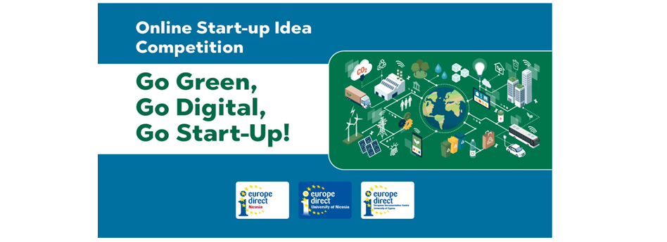 The Europe Direct Information Centre (EDIC) Nicosia, the European Documentation Centre University of Nicosia (EDC-UNIC) and the European Documentation Centre University of Cyprus (EDC-UCY) are proud to announce the “Go Green, Go Digital, Go Start-up!” Online Start-up Idea Competition for Cyprus-based young people between 18-30 years old.