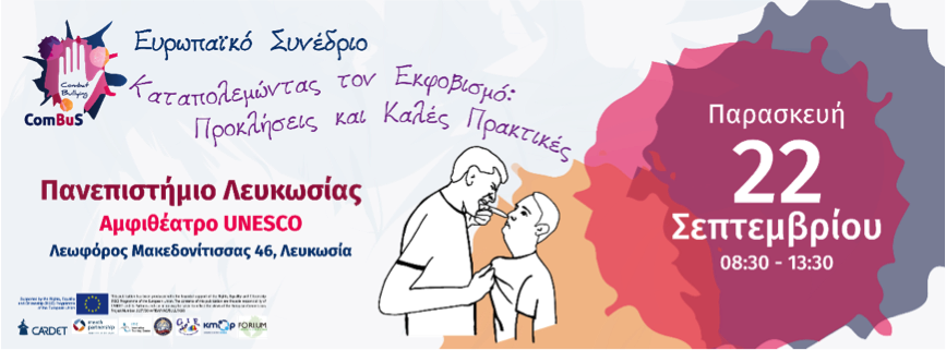 Ο ερευνητικός και εκπαιδευτικός οργανισμός CARDET σας προσκαλεί να συμμετάσχετε στο Ευρωπαϊκό Συνέδριο με τίτλο "Καταπολεμώντας τον εκφοβισμό: Προκλήσεις και Καλές Πρακτικές" το οποίο υλοποιείται στο πλαίσιο του Ευρωπαϊκού Έργου «Καταπολεμώντας τον Εκφοβισμό: Ένα Ολιστικό Σχολικό Πρόγραμμα».