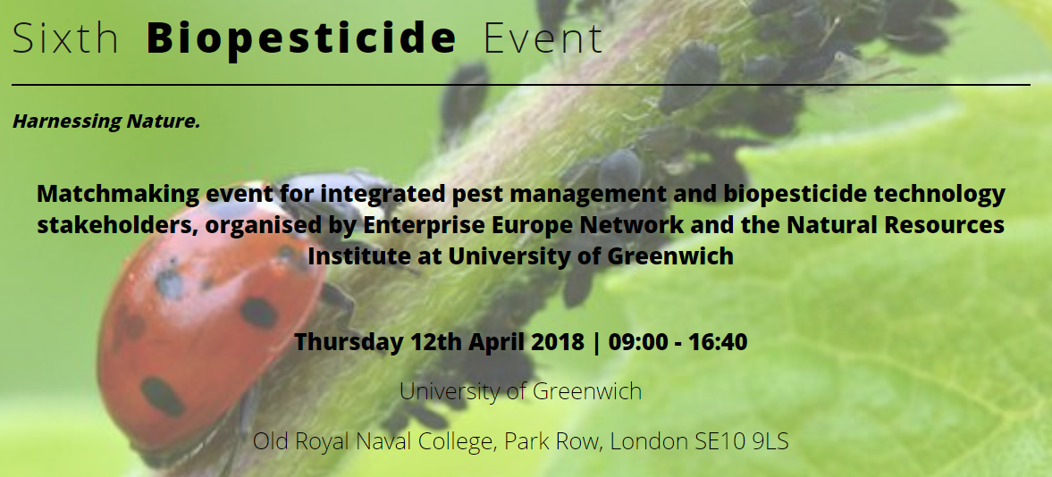 Matchmaking event for integrated pest management and biopesticide technology stakeholders, organised by Enterprise Europe Network and the Natural Resources Institute at University of Greenwich.