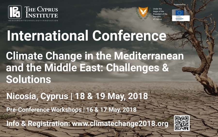 On the 18th and 19th May 2018, The Cyprus Institute (www.cyi.ac.cy) will host the International Conference “Climate Change in the Mediterranean and the Middle East: Challenges and Solutions”, which will take place at the “Filoxenia” Conference Centre. The Event is organised under the Aegis of the President of the Republic of Cyprus, H.E. Mr. Nicos Anastasiades, and with Support from the Representation of the European Commission in Cyprus.